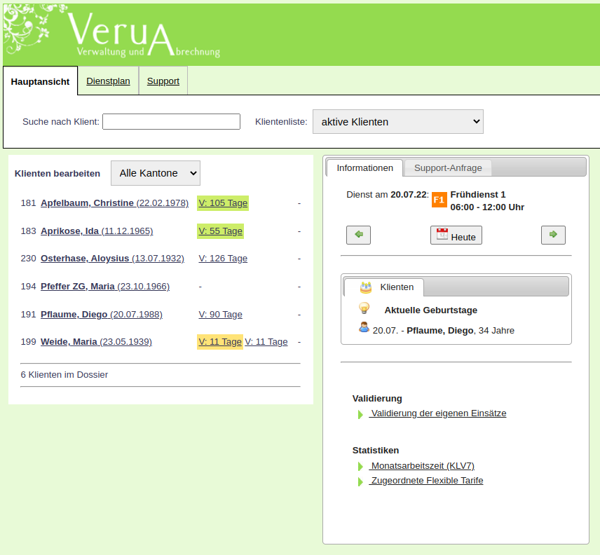 Mit grosser Freude können wir mitteilen, dass die Appikation VeruA ** Verwaltung und Abrechnung zum 01. November 2022 um die beiden Zusatzmodule Dienst- und Tourenplan für die Spitex-Version erweitert wurde.